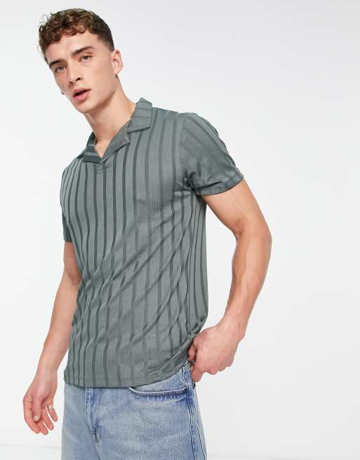 ASOS DESIGN - Polo côtelé brillant - Vert foncé