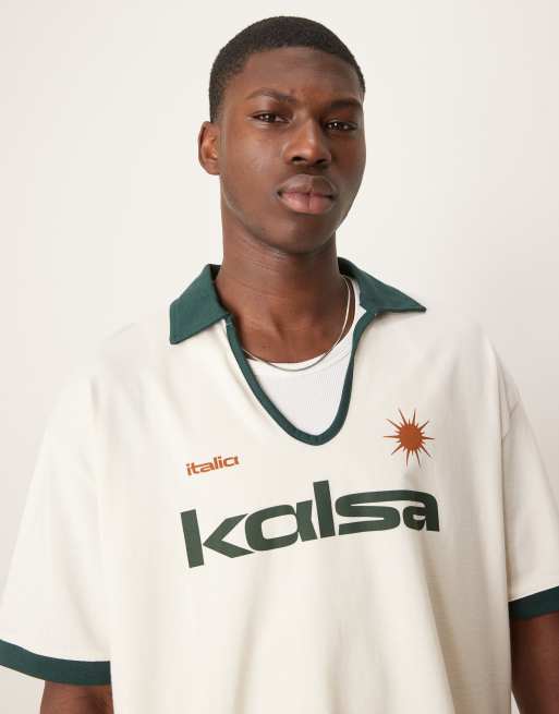 ASOS DESIGN - Polo court et oversize avec col contrastant et broderie sur la poitrine - Crème