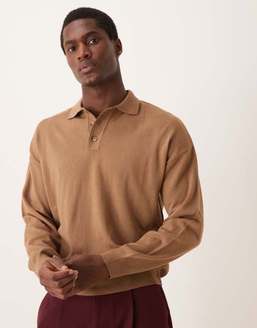 ASOS DESIGN - Polo décontracté coupe carrée en maille à manches longues - Beige