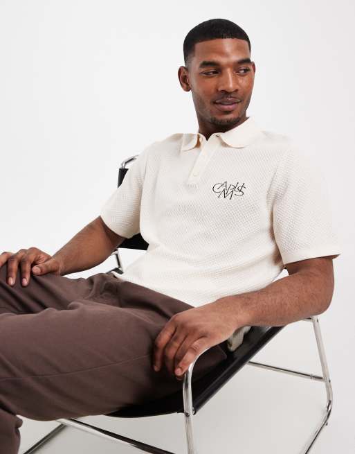 ASOS DESIGN - Polo décontracté en maille avec broderie sur la poitrine - Écru.