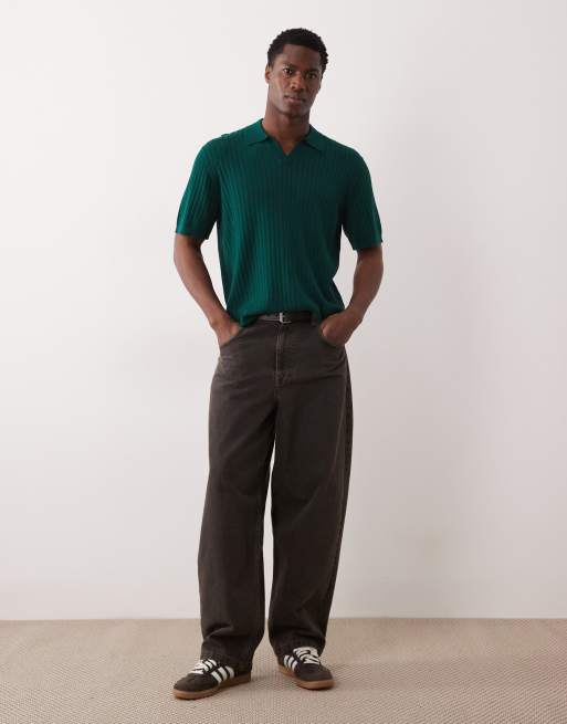 ASOS DESIGN - Polo décontracté en maille avec col cranté - Vert foncé