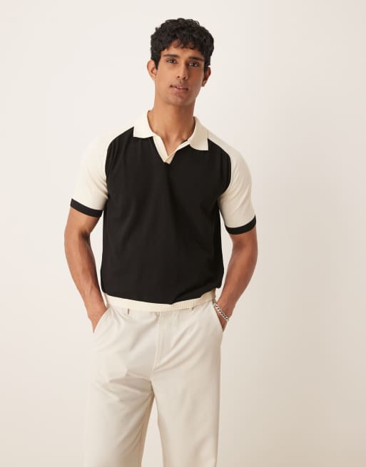 ASOS DESIGN - Polo décontracté en maille de qualité supérieure - Blanc/noir