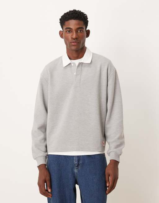ASOS DESIGN - Polo décontracté en tissu côtelé avec étiquette tissée - Gris chiné