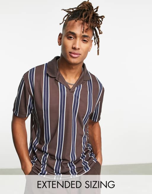 ASOS DESIGN - Polo décontracté rayé - Bleu marine/marron