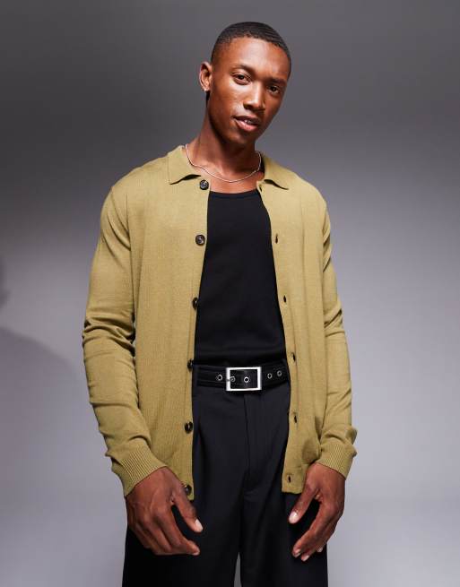 ASOS DESIGN - Polo d'ensemble boutonné à manches longues en maille - Kaki