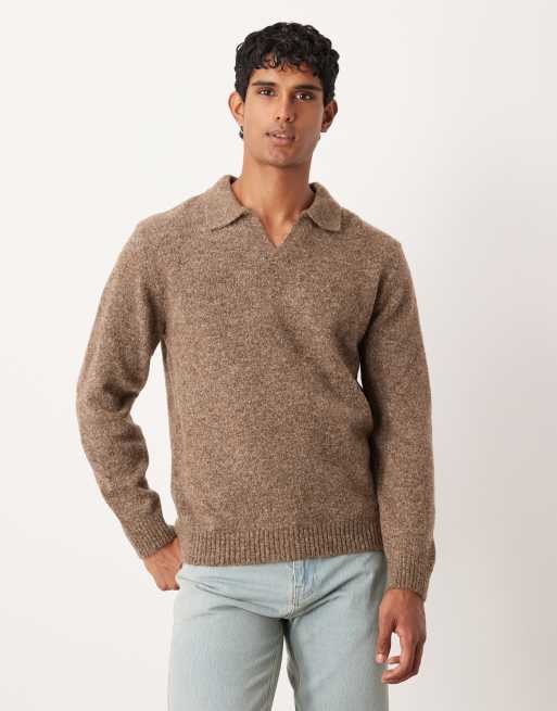 ASOS DESIGN - Polo en maille avec manches longues et col cranté - Marron