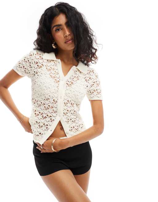 ASOS DESIGN - Polo en maille pointelle - Écru