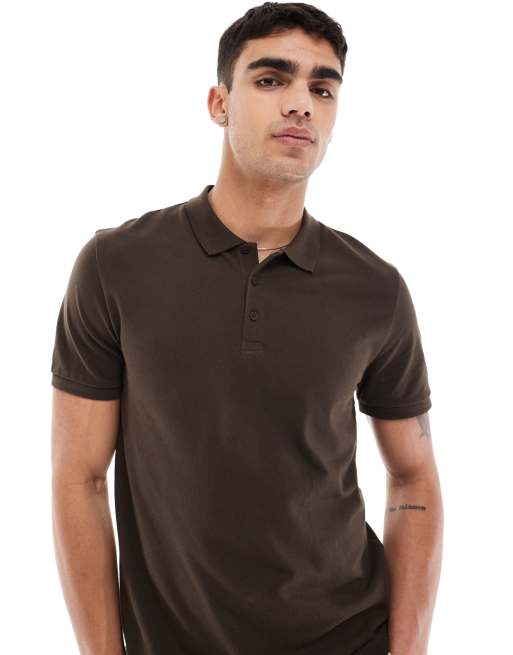 ASOS DESIGN - Polo en piqué - Marron foncé