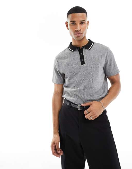 ASOS DESIGN - Polo manches courtes à carreaux - Noir et blanc
