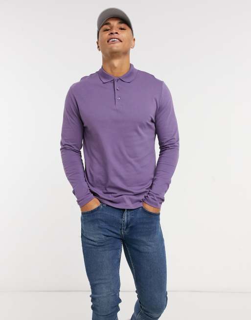 ASOS DESIGN - Polo manches longues en jersey de coton biologique - Violet