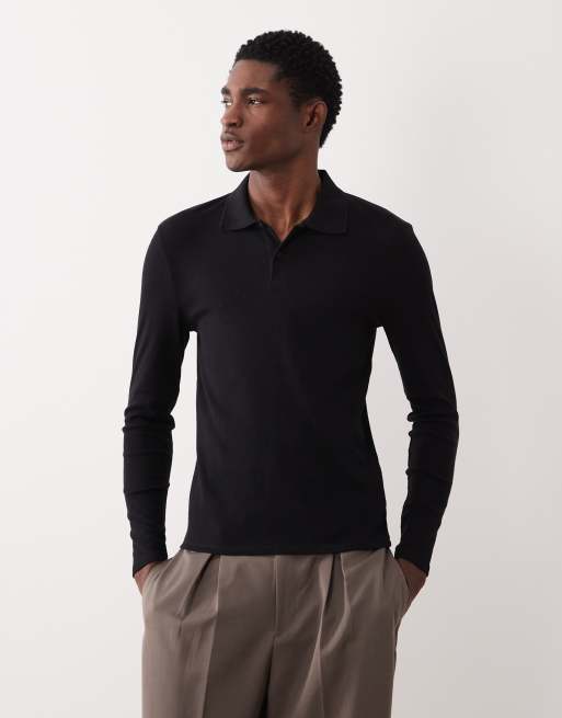ASOS DESIGN - Polo moulant à manches longues - Noir côtelé