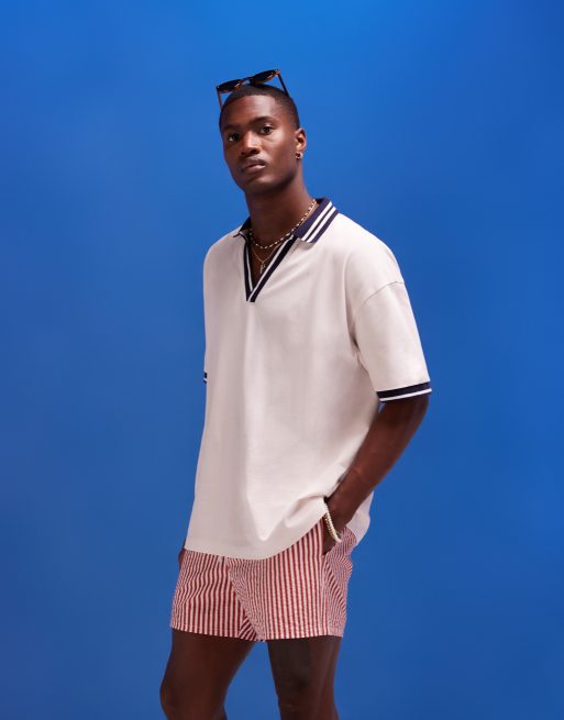 ASOS DESIGN - Polo oversize avec col à revers bleu - Beige