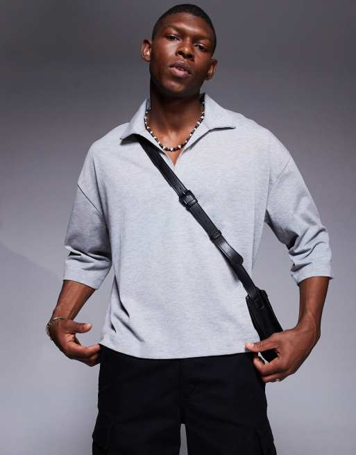 ASOS DESIGN - Polo oversize coupe carrée à col V - Gris chiné