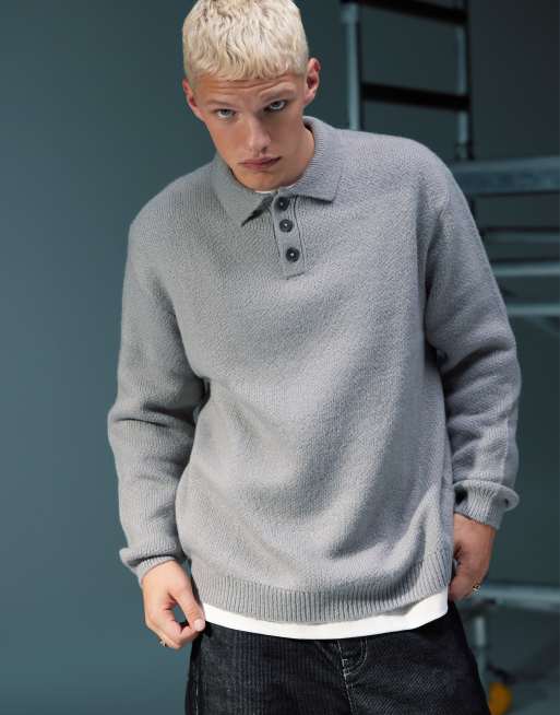 ASOS DESIGN - Polo oversize en maille brossée - Gris clair