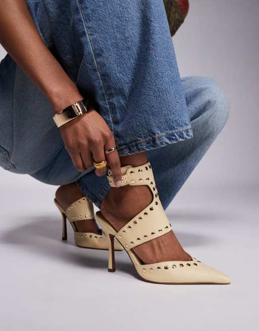 ASOS DESIGN - Power - Chaussures cloutées à talon haut - Beurre