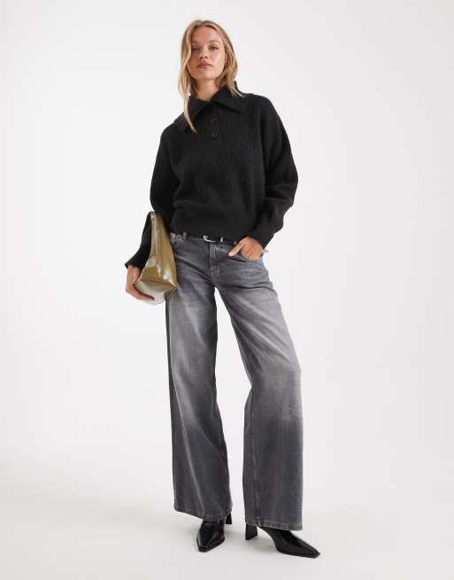 ASOS DESIGN - Pull à côtes anglaises avec col marin - Noir
