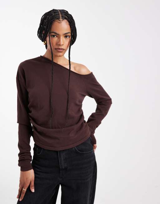 ASOS DESIGN - Pull asymétrique en maille fine - Marron