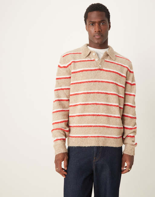 ASOS DESIGN - Pull col polo coupe carrée décontractée en maille texturée à rayures - Taupe