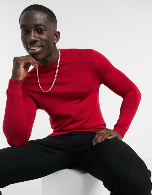 ASOS DESIGN - Pull col roulé moulant en laine mérinos - Rouge