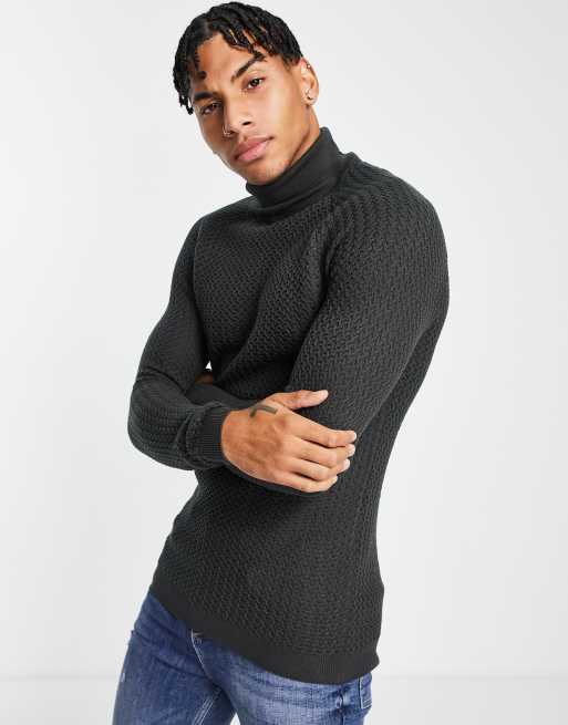 ASOS DESIGN - Pull col roulé moulant en maille texturée - Anthracite
