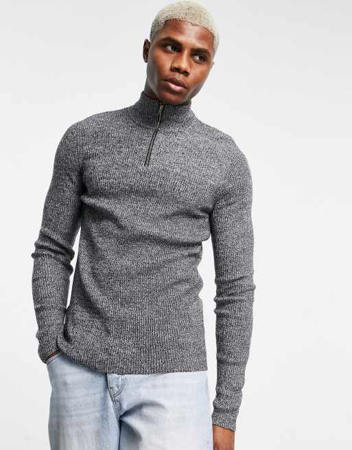 ASOS DESIGN - Pull côtelé moulant à demi fermeture éclair - Noir et blanc