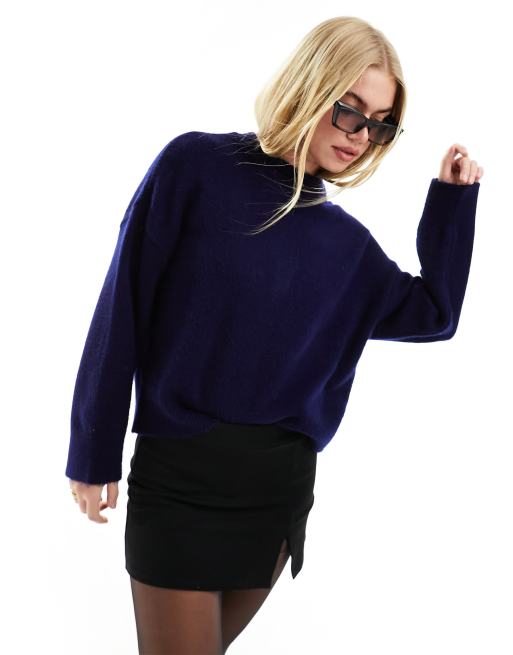 ASOS DESIGN - Pull coupe carrée à col ras de cou - Bleu marine