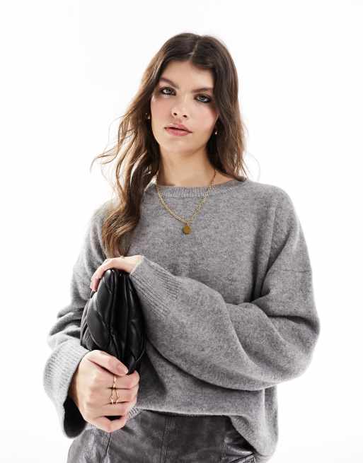 ASOS DESIGN - Pull coupe carrée à col ras de cou - Gris
