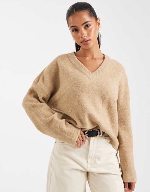 ASOS DESIGN - Pull coupe carrée en maille avec col V - Seigle