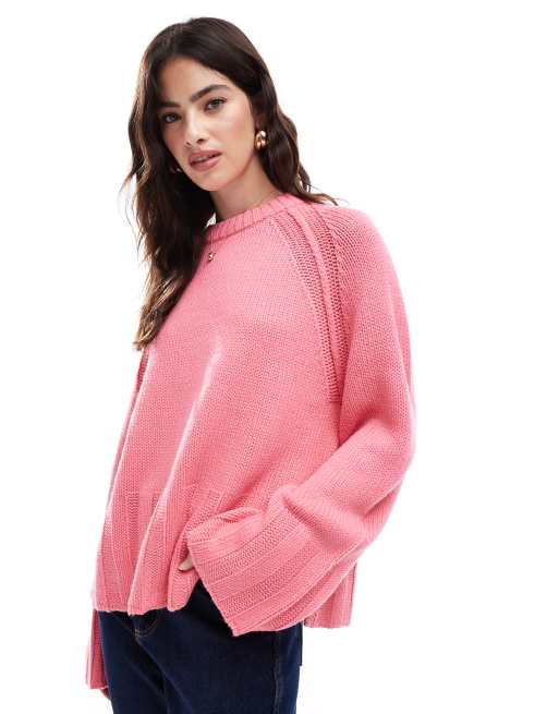 ASOS DESIGN - Pull coupe carrée en maille côtelée - Rose