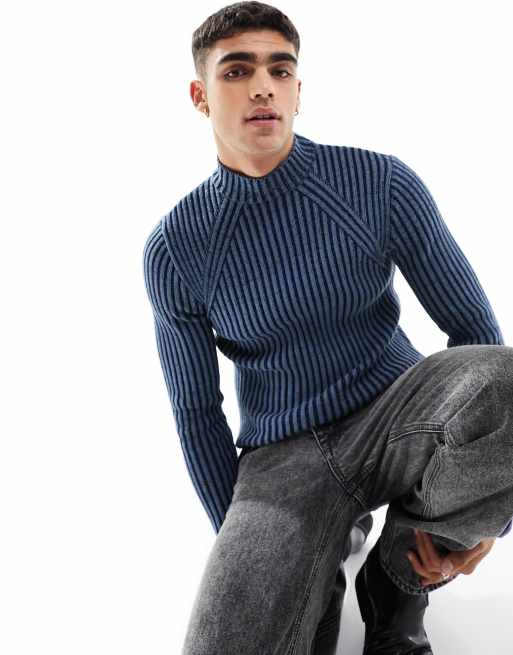 ASOS DESIGN - Pull coupe moulante en maille côtelée à col roulé - Bleu