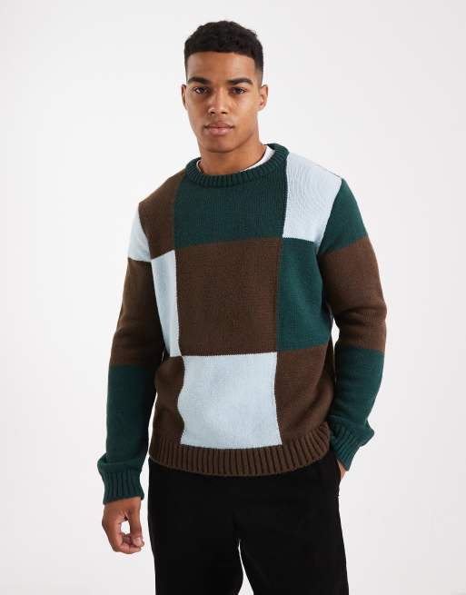 ASOS DESIGN - Pull décontracté en maille avec col ras de cou et motif damier sur l'ensemble