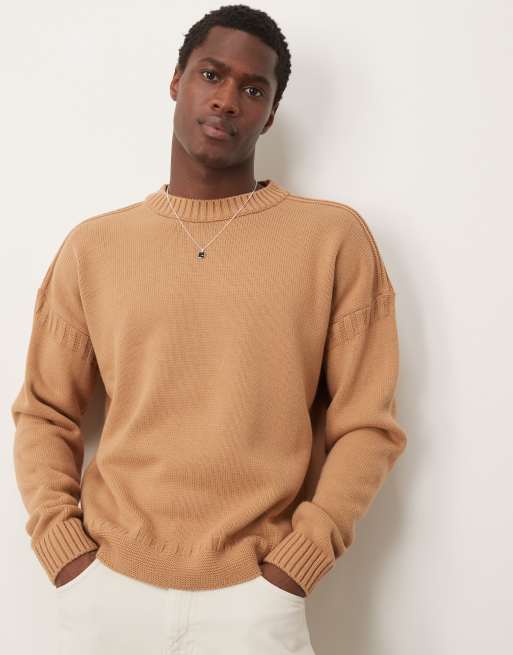 ASOS DESIGN - Pull décontracté en maille avec empiècements en point de surjet - Marron clair