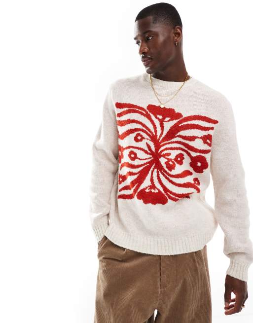 ASOS DESIGN - Pull décontracté en maille duveteuse avec motif à fleurs - Écru