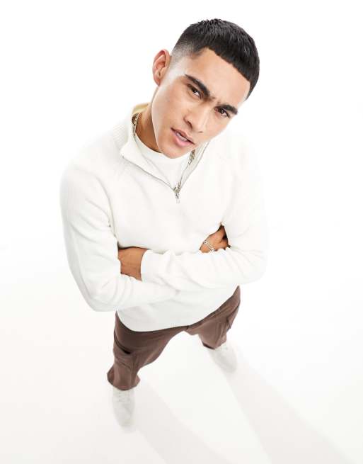 ASOS DESIGN - Pull en coton semi-épais à col zippé - Blanc