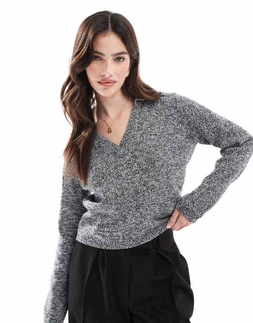 ASOS DESIGN - Pull en fil torsadé avec col - Noir et blanc