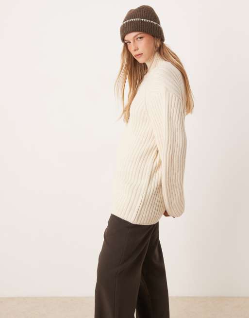 ASOS DESIGN - Pull en maille à col cheminée et manches structurées - Crème