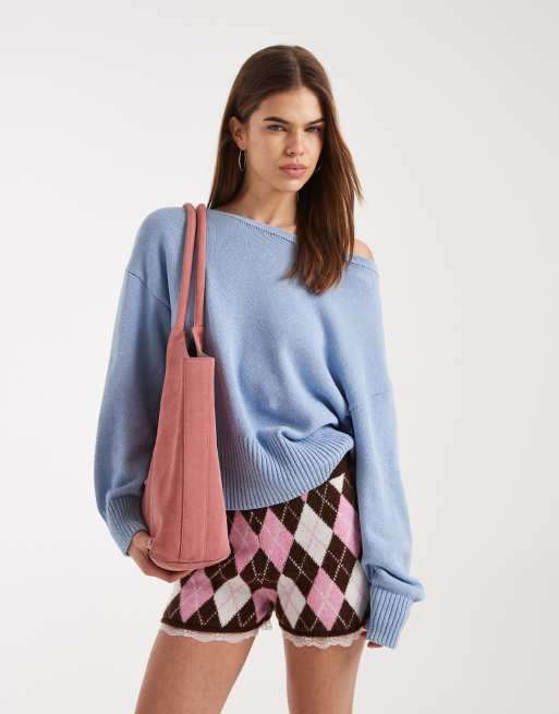 ASOS DESIGN - Pull en maille à épaules dénudées - Bleu clair