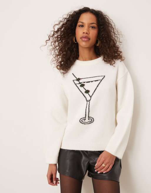 ASOS DESIGN - Pull en maille avec imprimé cocktail - Écru