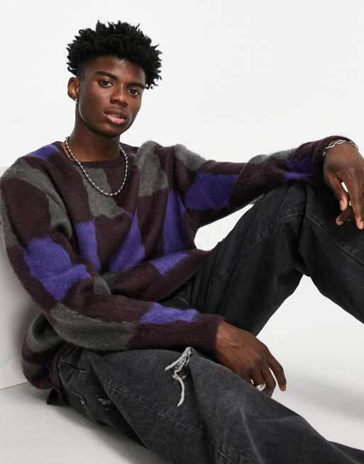 ASOS DESIGN - Pull en maille duveteuse à motif damier - Bleu