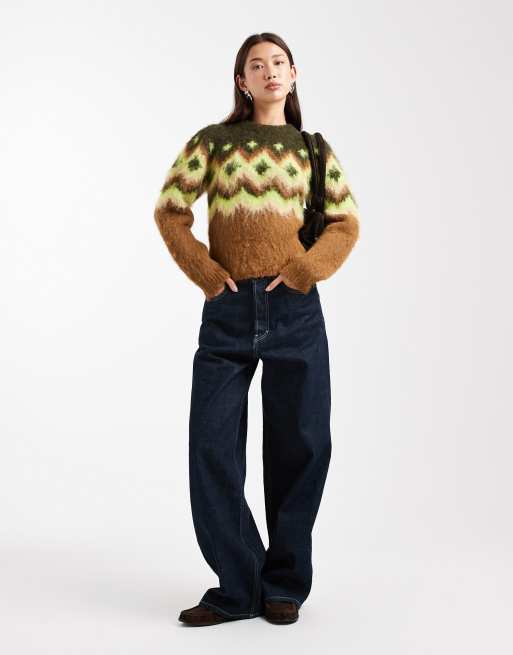 ASOS DESIGN - Pull en maille fairisle brossée à épaules structurées - Vert