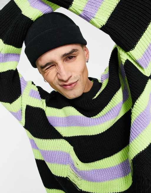 ASOS DESIGN - Pull en maille rayée - Noir et violet