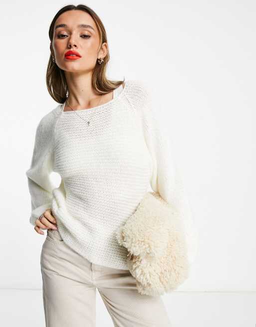 ASOS DESIGN - Pull en maille texturée avec manches volumineuses - Crème