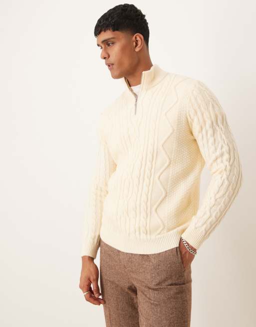 ASOS DESIGN - Pull épais en maille torsadée avec col zippé - Crème