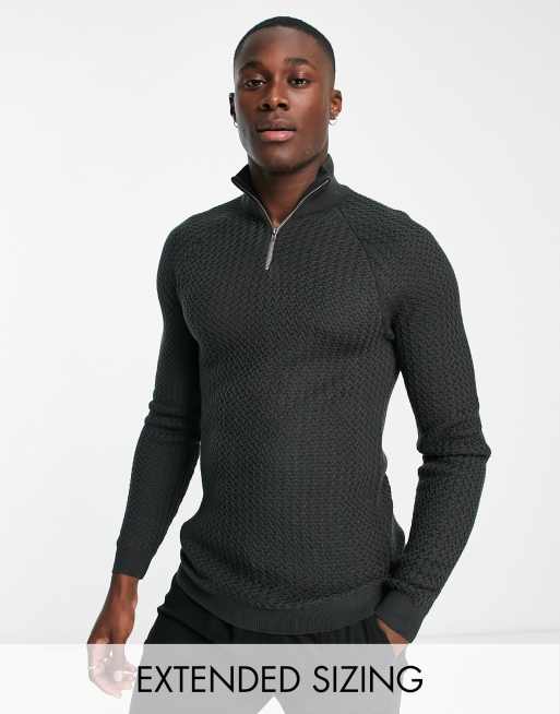ASOS DESIGN - Pull moulant en maille texturée à demi-fermeture éclair - Gris anthracite