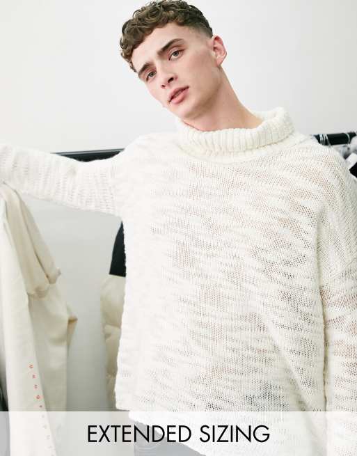 ASOS DESIGN - Pull oversize à col cheminée en maille texturée - Crème