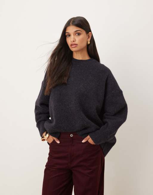 ASOS DESIGN - Pull oversize à col ras de cou en alpaga et laine de qualité supérieure - Marine ardoise