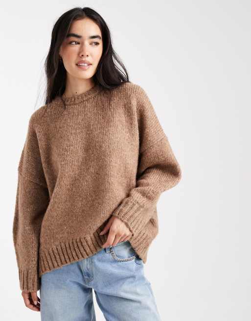 ASOS DESIGN - Pull oversize à col ras de cou et ourlet arrondi - Beige foncé