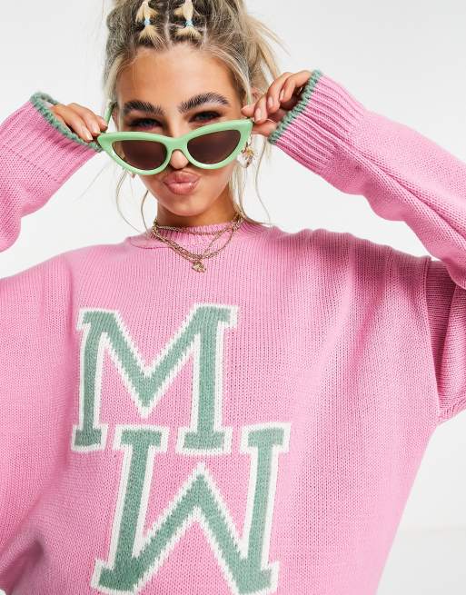 ASOS DESIGN - Pull oversize à monogramme - Rose