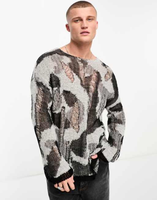 ASOS DESIGN - Pull oversize avec point d'échelle - Noir et gris