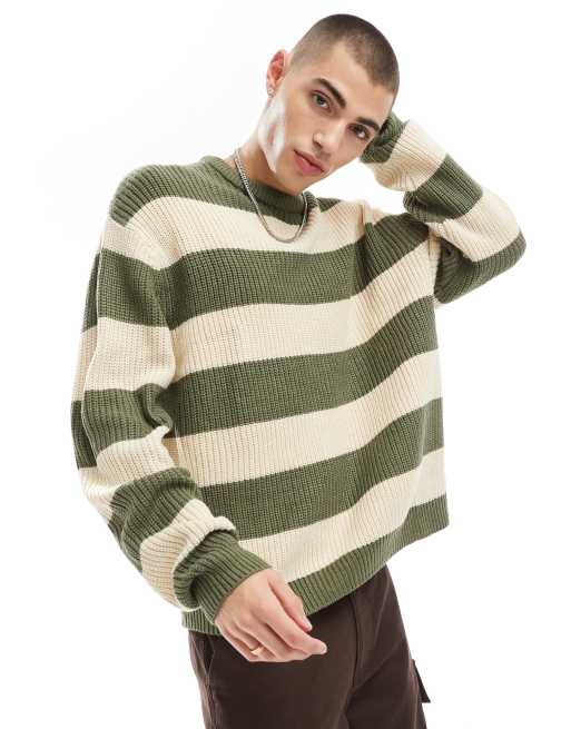 ASOS DESIGN - Pull oversize en maille à rayures - Kaki